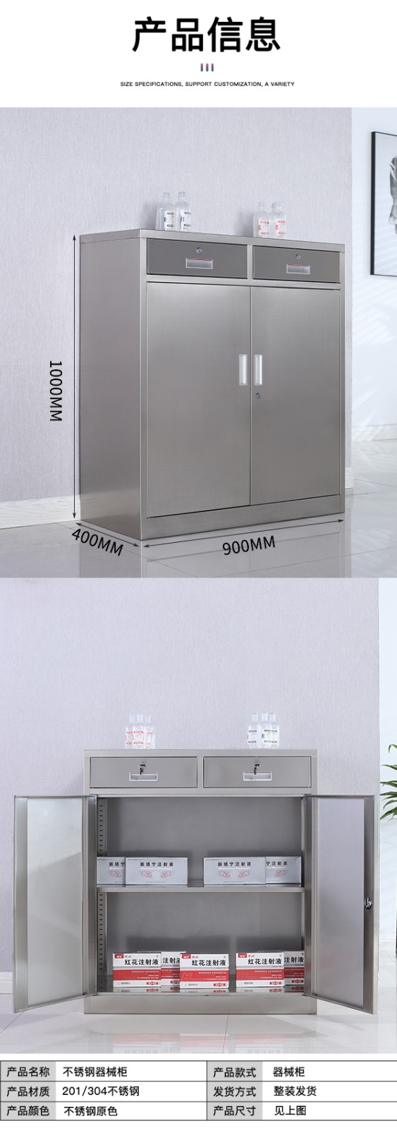 不銹鋼西藥柜二斗下節
